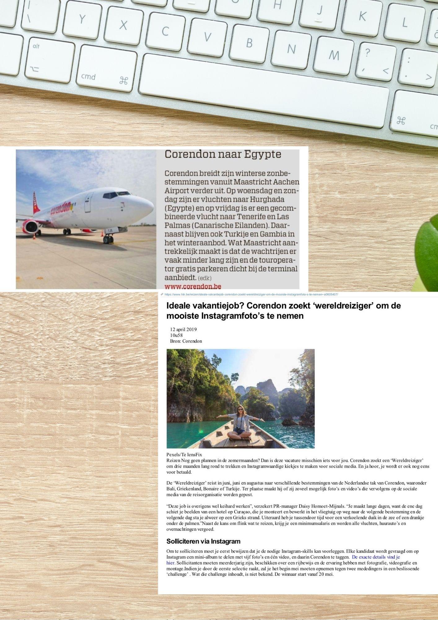 We communicate about the different destinations Corendon is offering, with a focus on departure airports of Brussels and Maastricht. We invite media to get acquainted with the newest destinations and hotels and we have set up an influencer ambassador program, selecting influencers that match with the Corendon brand and reach the right target audience. In addition, we also organize events on a regular basis and set up interviews with Corendon executives. In 2019 we supported Corendon on one of the biggest PR stunts ever made: installing a real Boeing 747 in the garden of the brand new Corendon Village Hotel near Amsterdam.